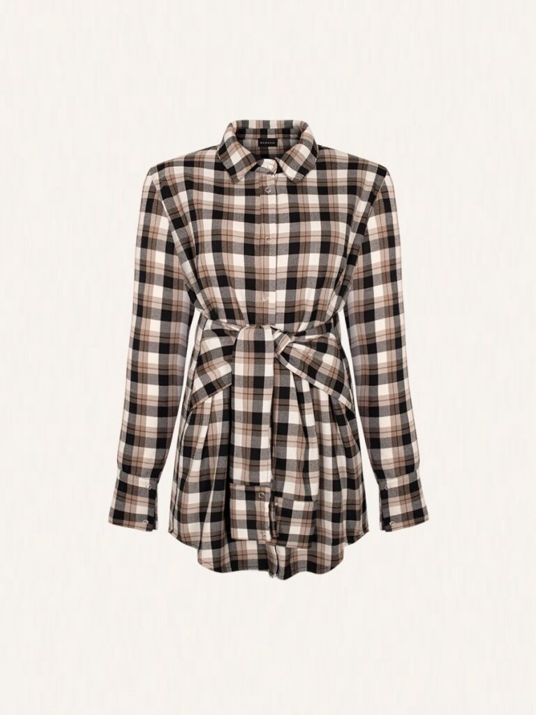 Rękawy w talii do zawiązania – pozwalają nosić koszulę na kilka sposobów i nadają sylwetce lekkości.